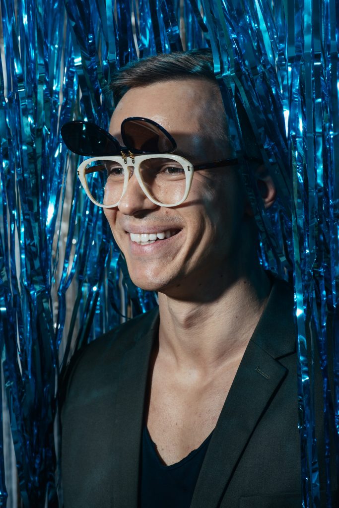Į sostinės senamiestyje įkurtos optikos studijos „Glasses On“ atidarymą susirinkę mados ir stiliaus mylėtojai pakliuvo į čia pat įkurtą improvizuotą D. Ščiukos foto studiją. Kol už lango nuolat pliaupia lietuviškos vasaros liūtys, fotografas pakvietė „išsimaudyti“ žvaigždžių lietuje, žėrinčiame sidabru ir vandenyno mėliu.